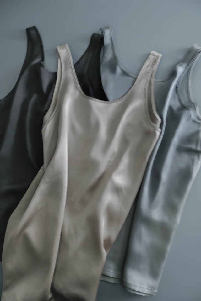 Mesh tank | Black, Gray, Beige | S, M, L impressive back, comfortable, sporty, elegant, easy-to-wear, for day and night perfect match for Y-back Bra and T-back bra, Tube bra made in Japan silk 100% S: Chest 88 cm | Length 65 cm M: Chest 92 cm | Length 67 cm L: Chest 98 cm | Length 69 cm unefig.のタンクトップは、インナーとしても、一枚でトップスとしてもご着用頂けます。タンクトップをボトムスの上に出して着る時のポイントとなるよう、左右裾に小さくスリットを入れました。また、ボトムスにインにして着用した場合にも十分な長さが確保出来る着丈です。 シンプルながら、デコルテと背中がきれいに見えるようカットや生地の使い方を工夫しました。背中のメッシュ使いがポイントです。ブラや洋服に合わせて、ご自由に組み合わせをお楽しみください。 ゆったりめのラインですので、脱着もしやすく、ストレスフリーの着心地です。 ◯生地について シルク100%のサテン生地は、その上品な光沢と滑らかな肌触りが特徴です。この気持ちのよさを是非ご体感ください。 細かなメッシュ生地は、貴重なシルク100%。柔らかで軽やかで、華美になりすぎません。肌を生に見せるより、メッシュを通すことで奥ゆかしさを感じさせる反面、かえって大胆にも見える。そんな両義性が魅力です。 unefig.オリジナルカラーです。 一回のご注文毎にunefig.ロゴ入りハンカチにお包みして納品致します。